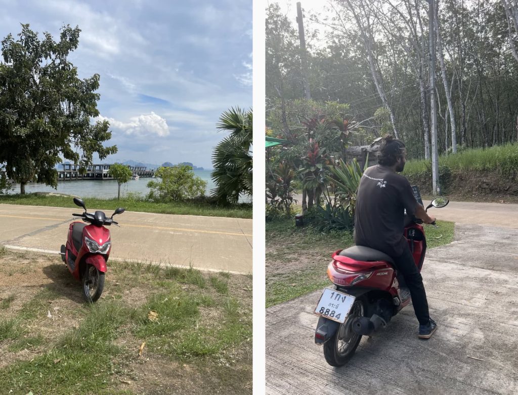 If this is your first time on a scooter in Thailand, this is the place to try it because the island is flat and surrounded by a concrete road, which makes driving and getting from place to place very easy, and all the beaches can be reached from there, compared to Koh Chang, for example, which is a much more mountainous island.
